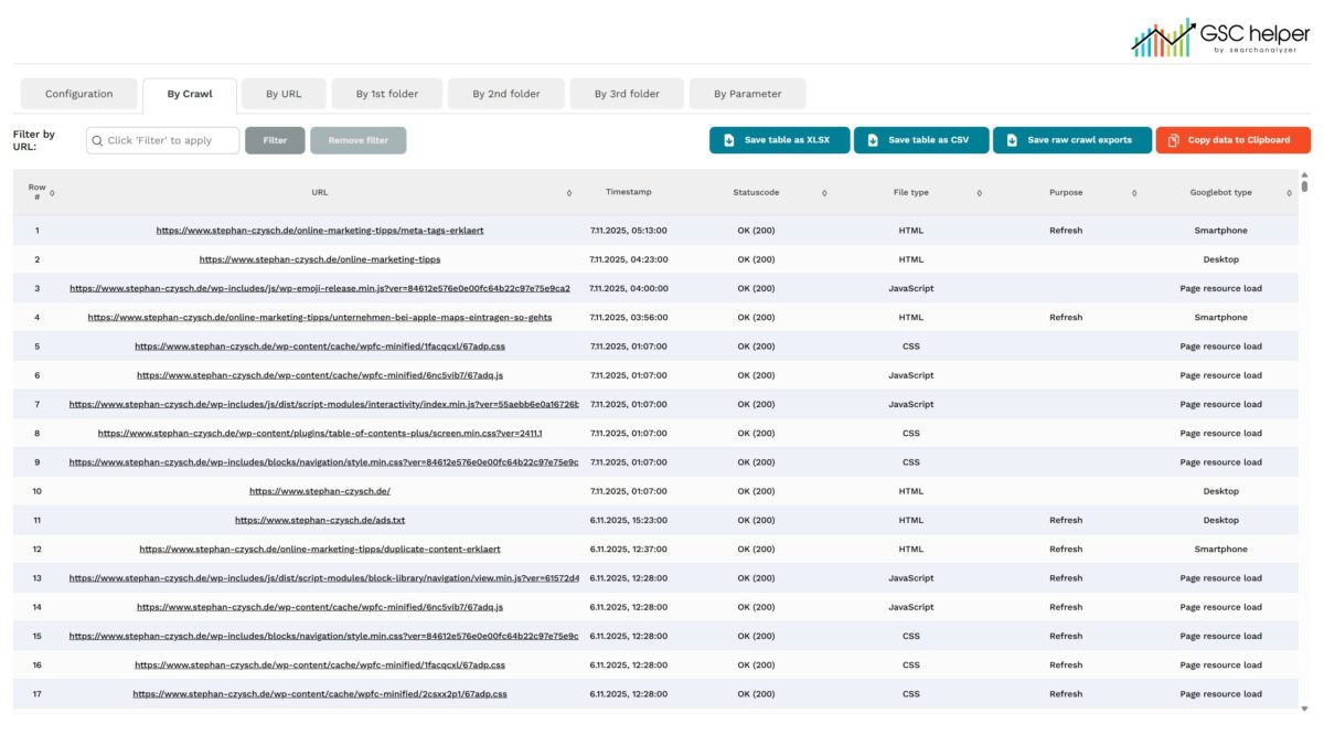 Logfileanalyse mit GSC Helper